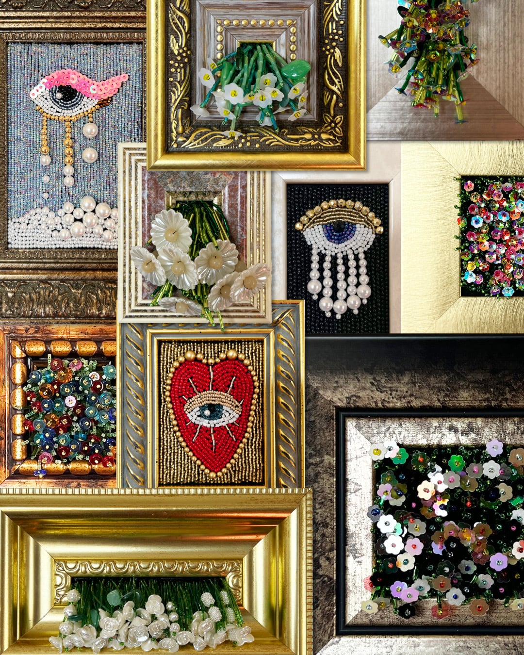 美しい目と涙のモチーフが刺繍された壁掛けアートです。ユニークで印象的なデザインが特徴で、お部屋のインテリアを個性的に引き立て、心揺さぶる空間を演出します。シンプルなインテリアにも見事に調和し、見る人を惹きつける魅力を秘めたアイテムです。