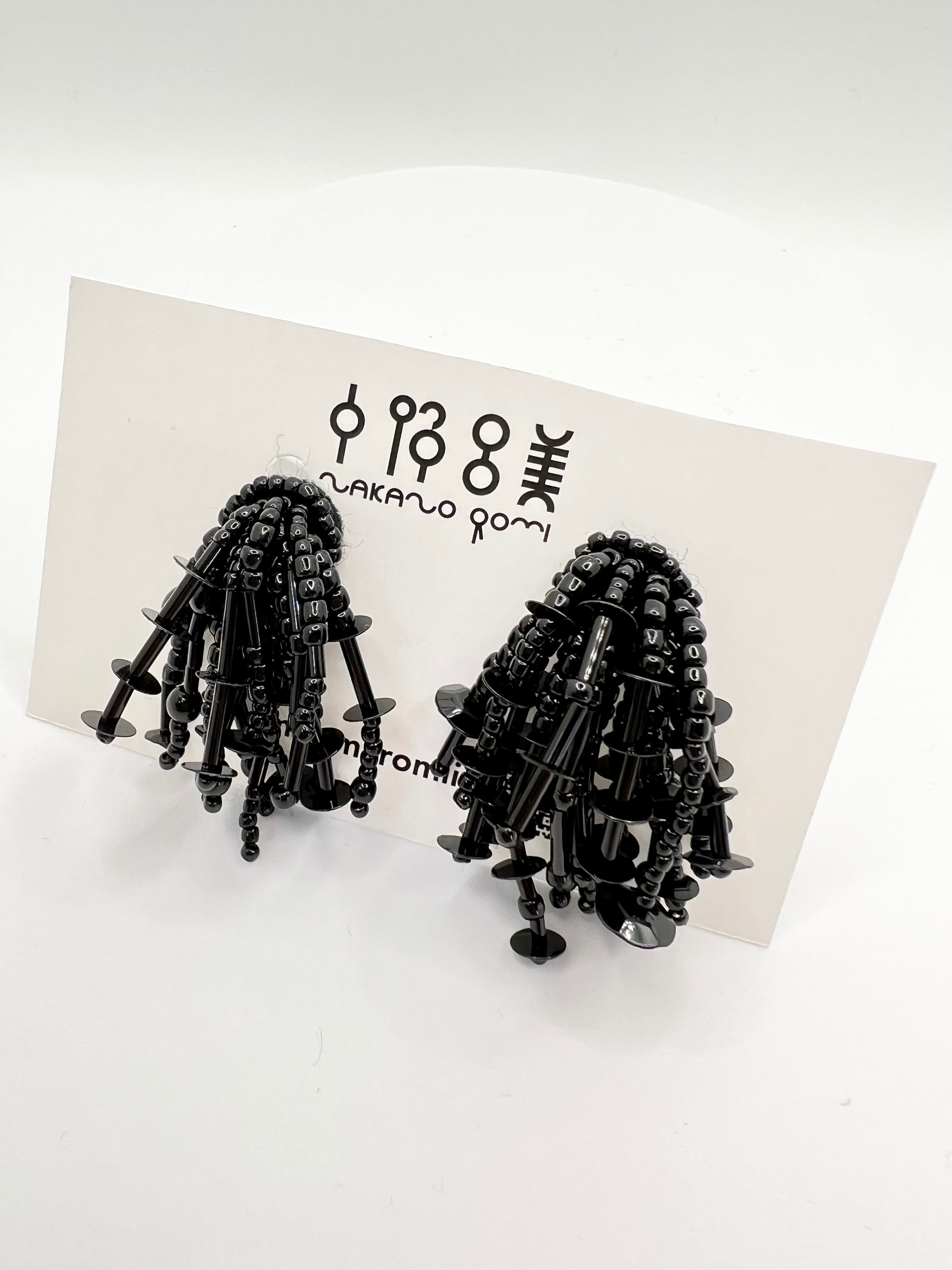 違う種類のビーズの組み合わせではありますが統一感があり、存在感はありますが、シックな印象にもなるデザインです。