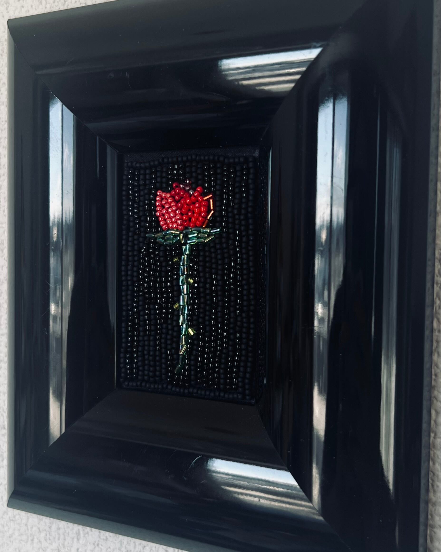 美しい薔薇の刺繍が施された壁掛けアート作品です。繊細でありながらも存在感のあるデザインは、お部屋の雰囲気をさらに引き立て、上品さを演出します。シンプルなインテリアにも自然に溶け込み、心地よい空間を作り出します。
